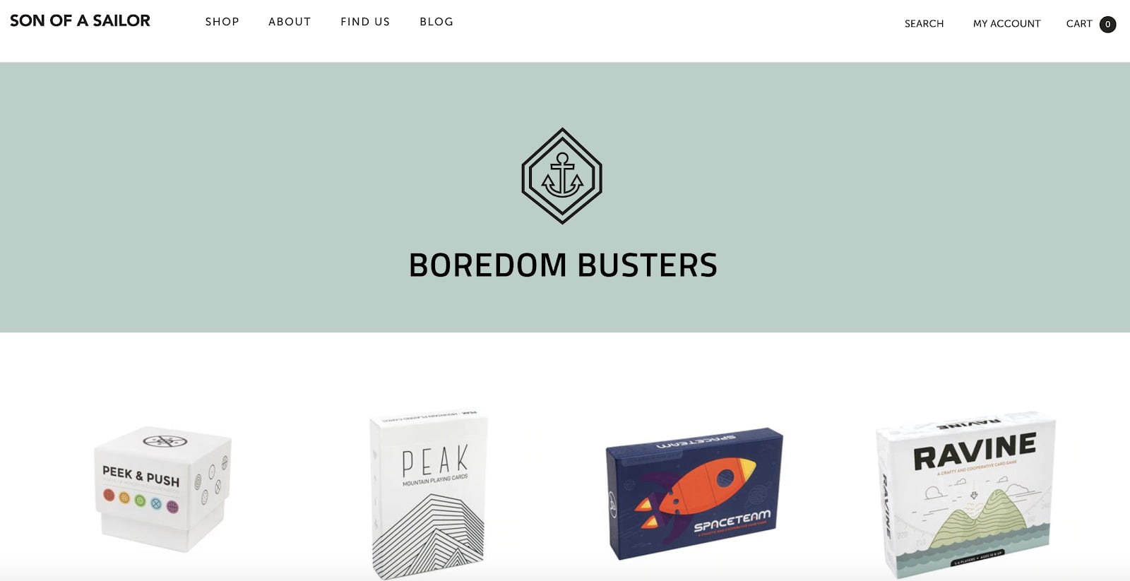On the ecommerce side, some stores have begun stocking new items and/or featuring collections of existing products that are more relevant to many people’s day-to-day lives now — specifically, staying at home. Son of a Sailor, a shop focused on gifts like jewellery and other accessories, has a product collection page of “Boredom Busters” featured on their homepage.