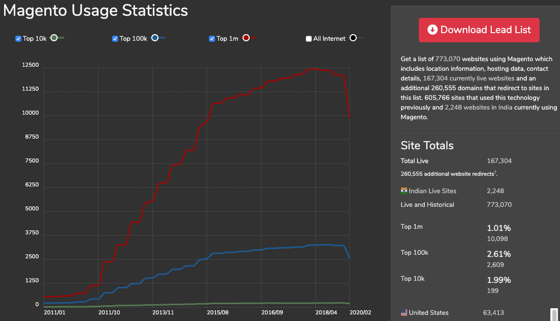 There have been more than 700,000+ Magento downloads by 2020 and it keeps on increasing to date.