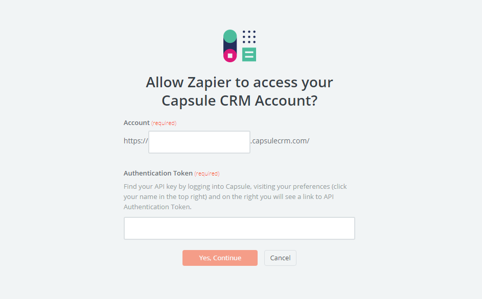 - Now, your screen will display as the following image. Further, enter Authentication Token that is found on your preferences page, then click on Yes, Continue.