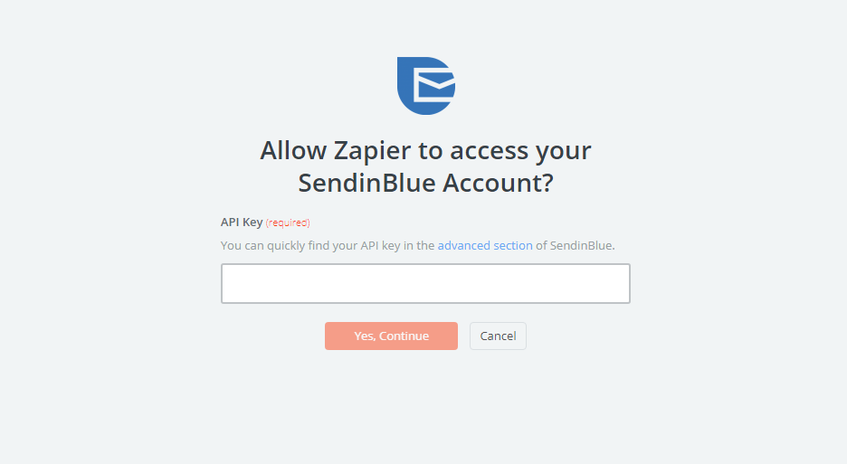 Now, you need to look for API Key in your SendinBlue account. After entering API Key, your PC will show the account that you have just created. Now, click on Continue.
