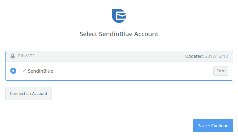 Next, you need to Select SendinBlue account and click on Connect an Account. Then, your screen will display an image below: