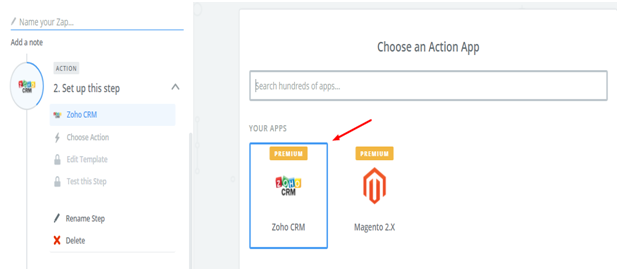 - Then select ZOHO CRM Account -> Click on Connect Account -> Follow the guide