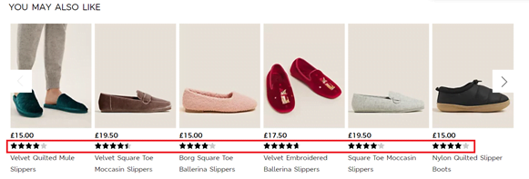Marks & Spencer example where related products are listed with star ratings: